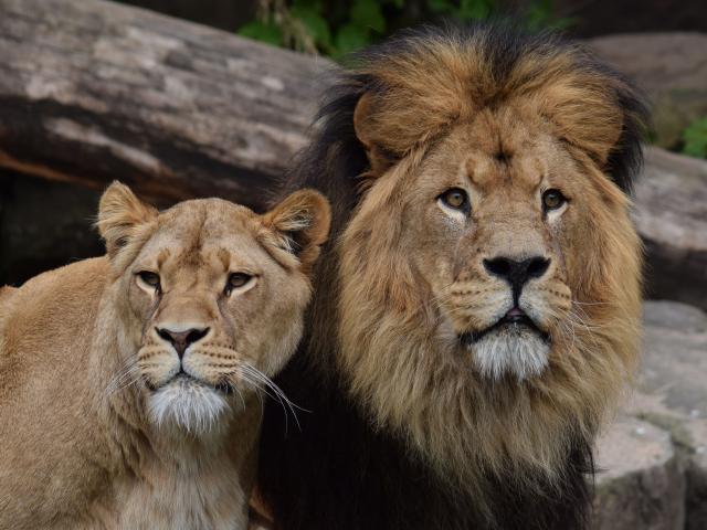 » Wallpaper Big lion and lioness in the zoo