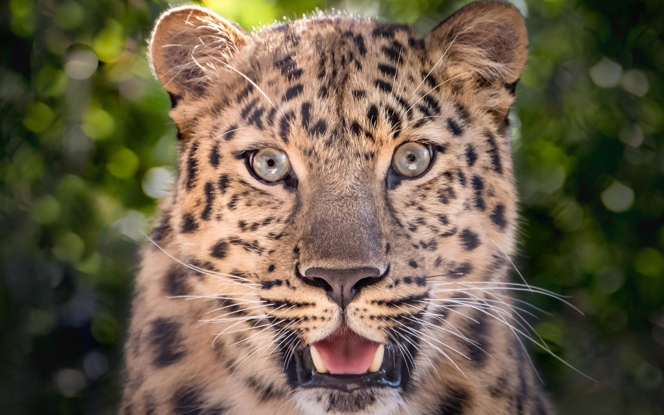 Wallpaper Spotted leopard with open mouth