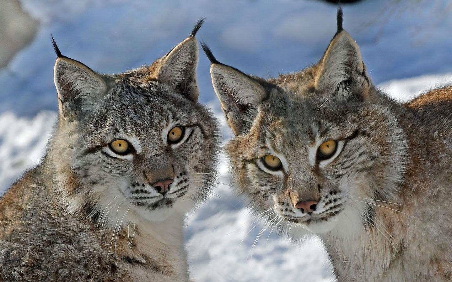 Wallpaper Two lynxes in winter close-up