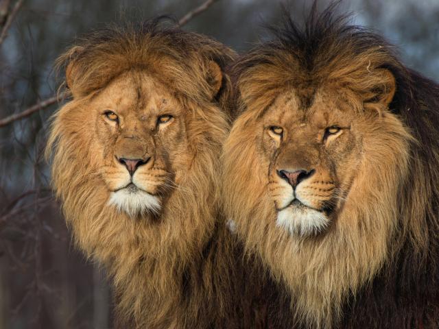 Wallpaper Two big serious lions
