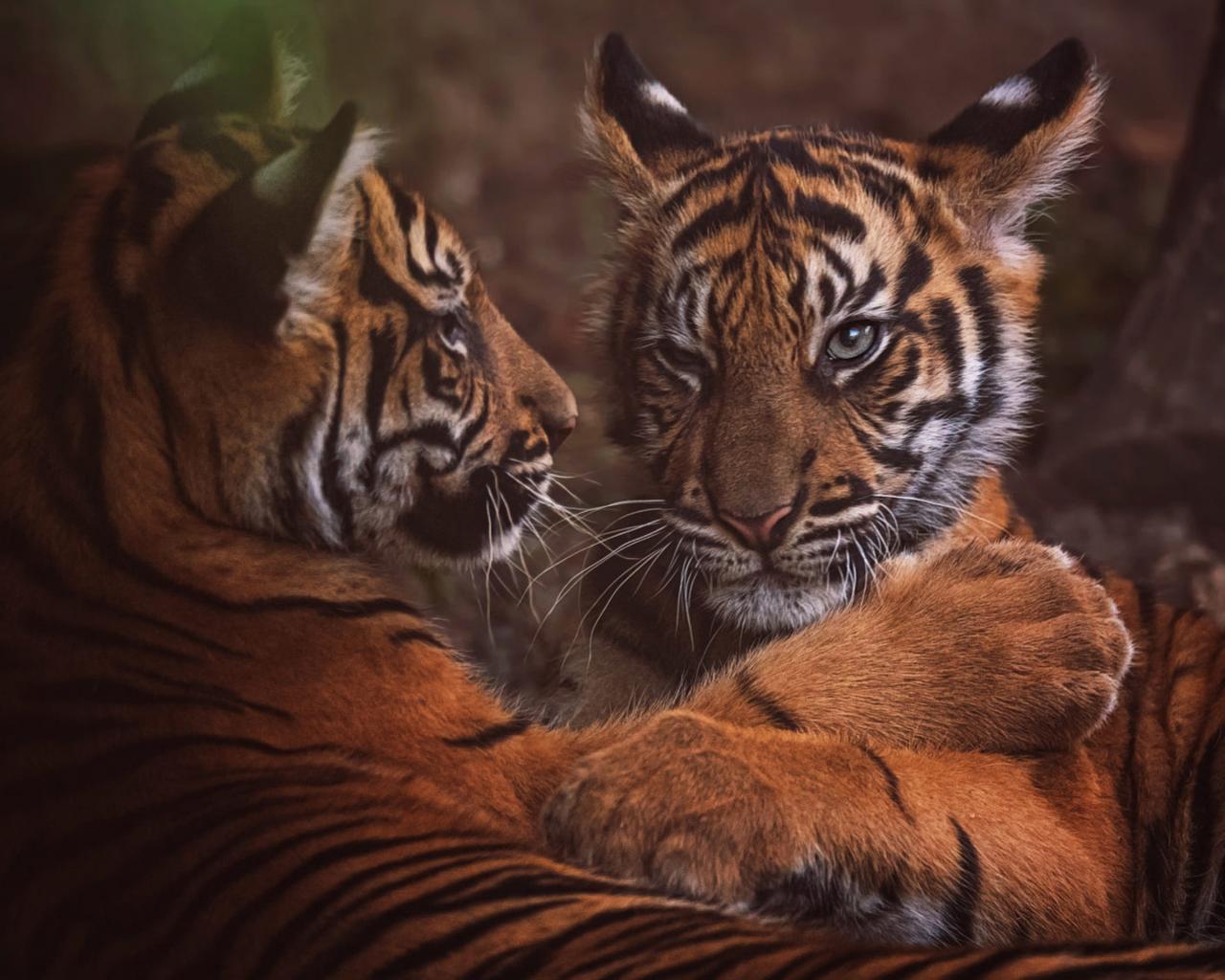 Wallpaper Two little cubs play