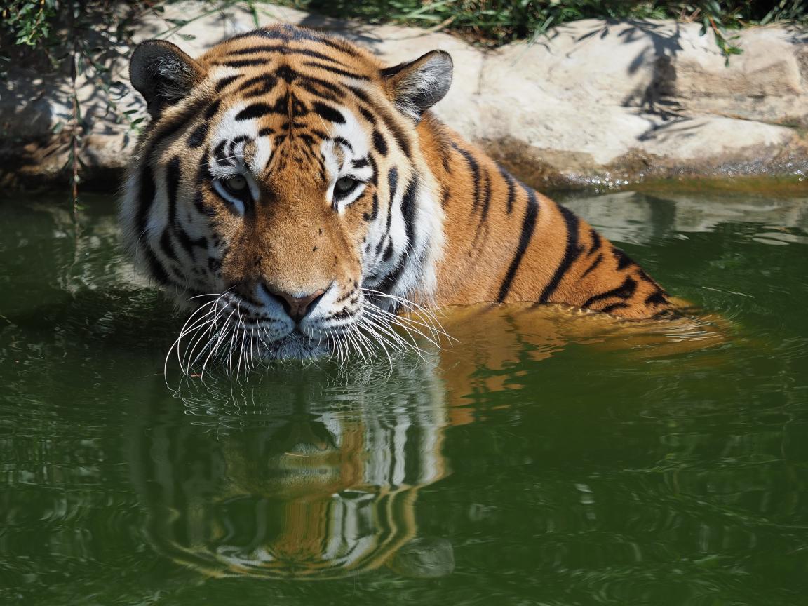 Wallpaper A large Siberian tiger sits in the water