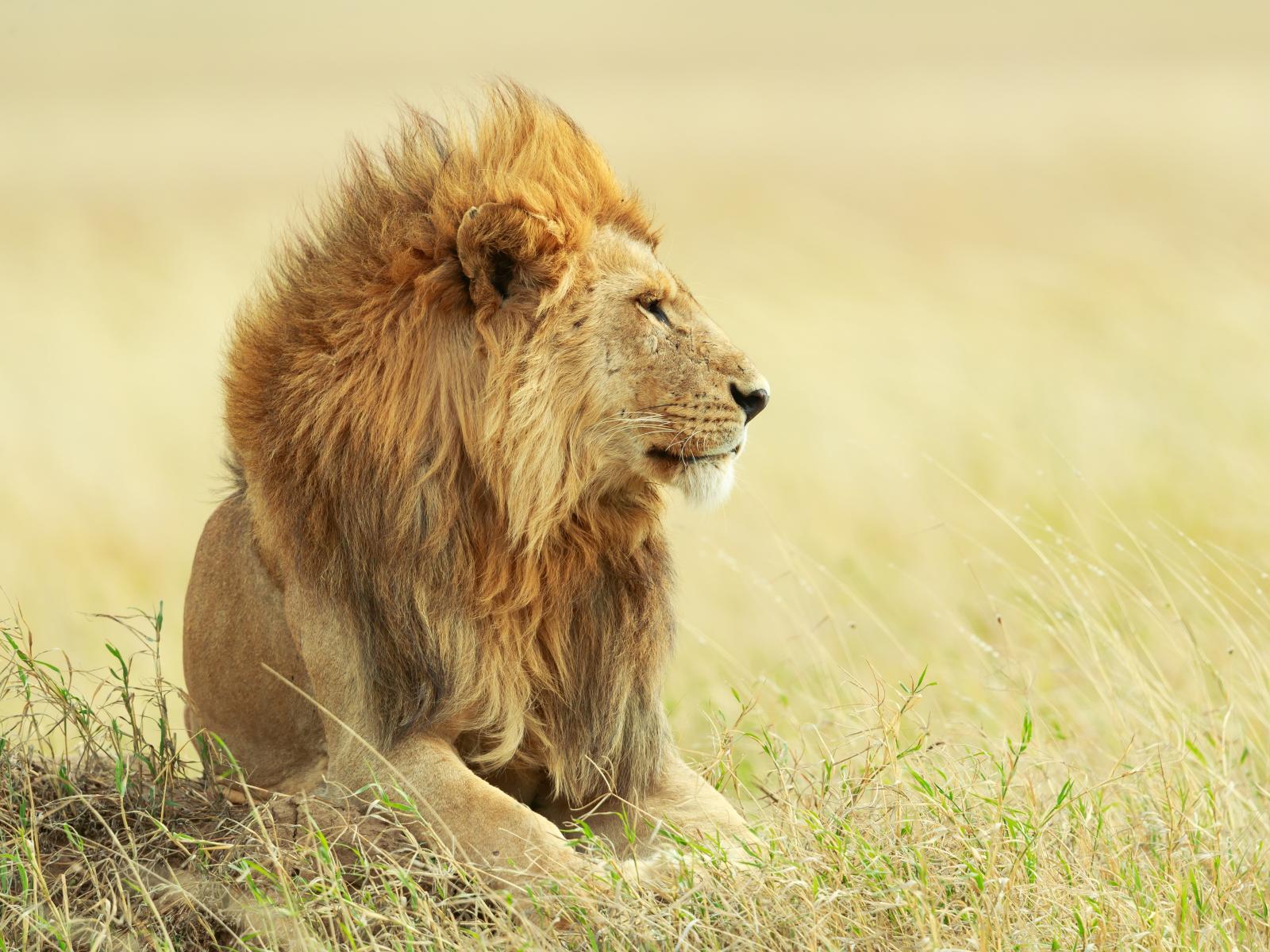 » Wallpaper Big lion lying in the grass