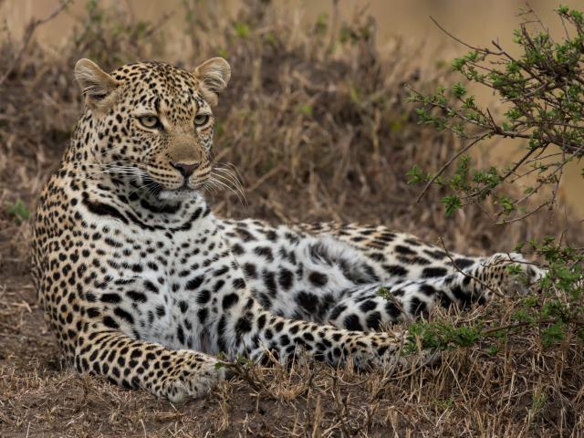 Wallpaper Big graceful leopard lying on the grass