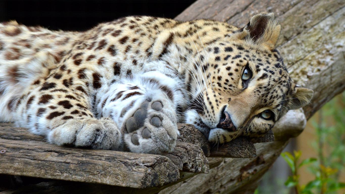 Wallpaper Beautiful predatory spotted leopard lies