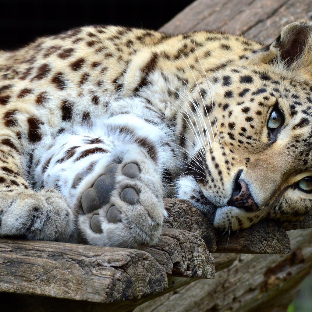 Wallpaper Beautiful predatory spotted leopard lies