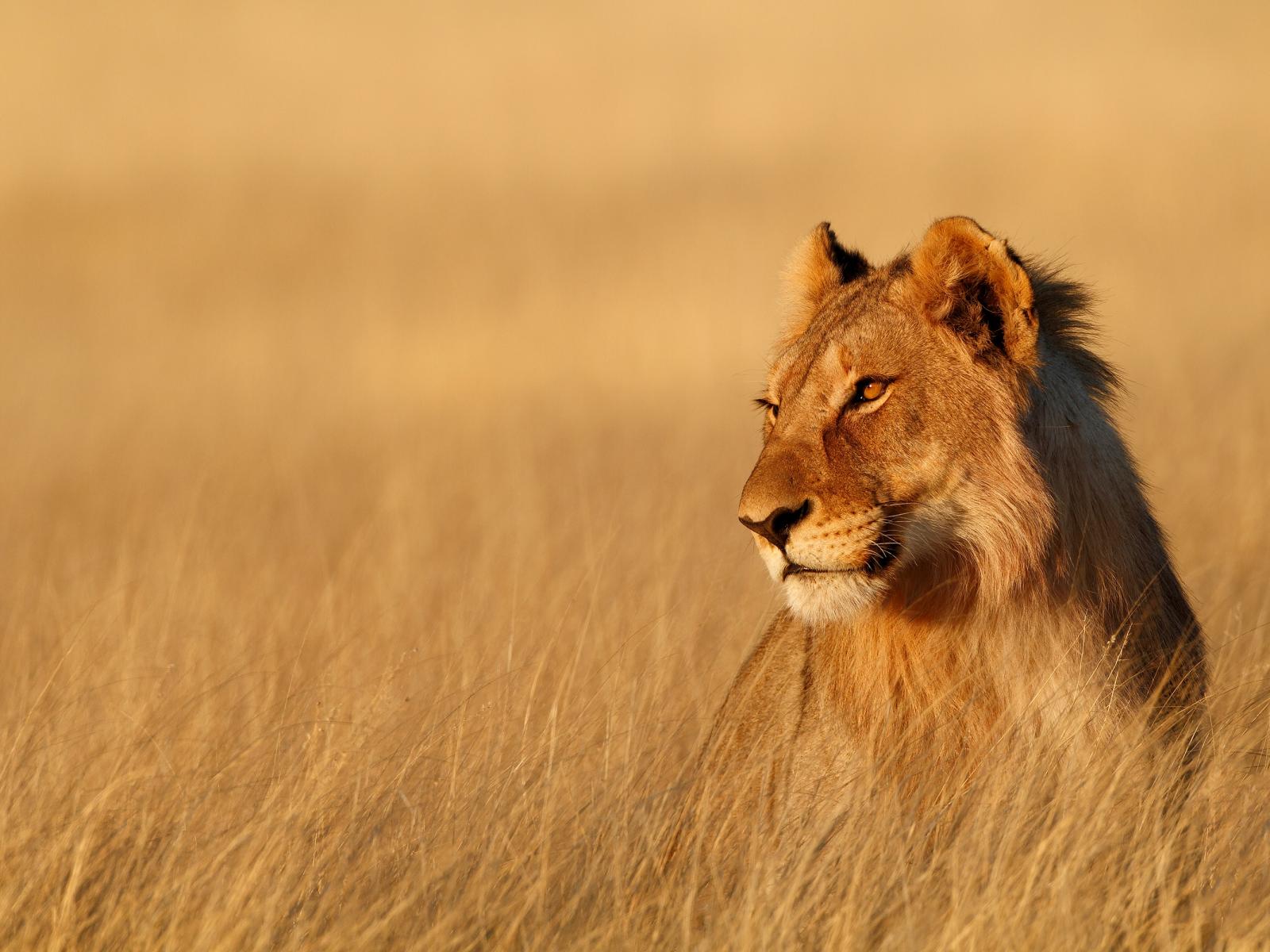 Wallpaper Big lioness sitting in the dry grass