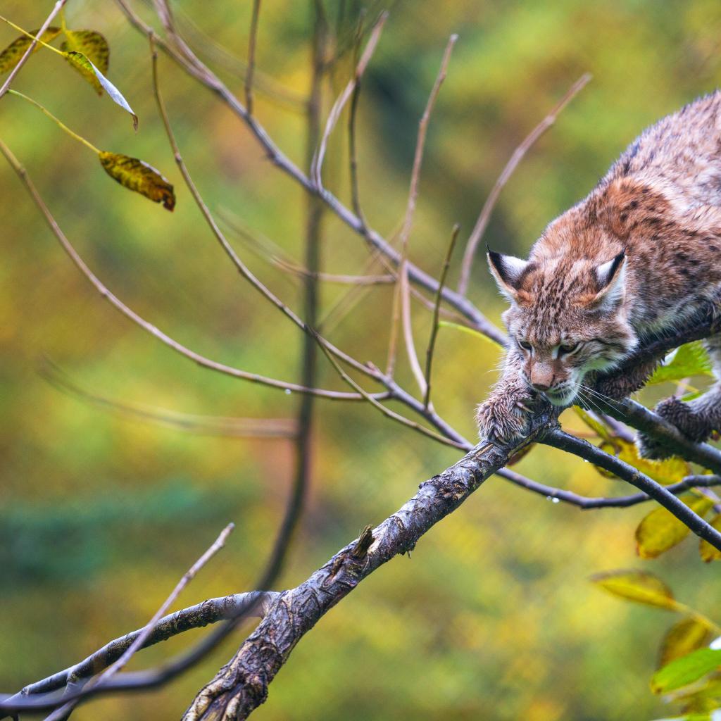 Wallpaper Lynx climbs up a tree