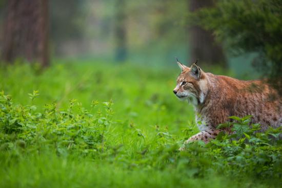 » Wallpaper Big lynx sneaks on green grass