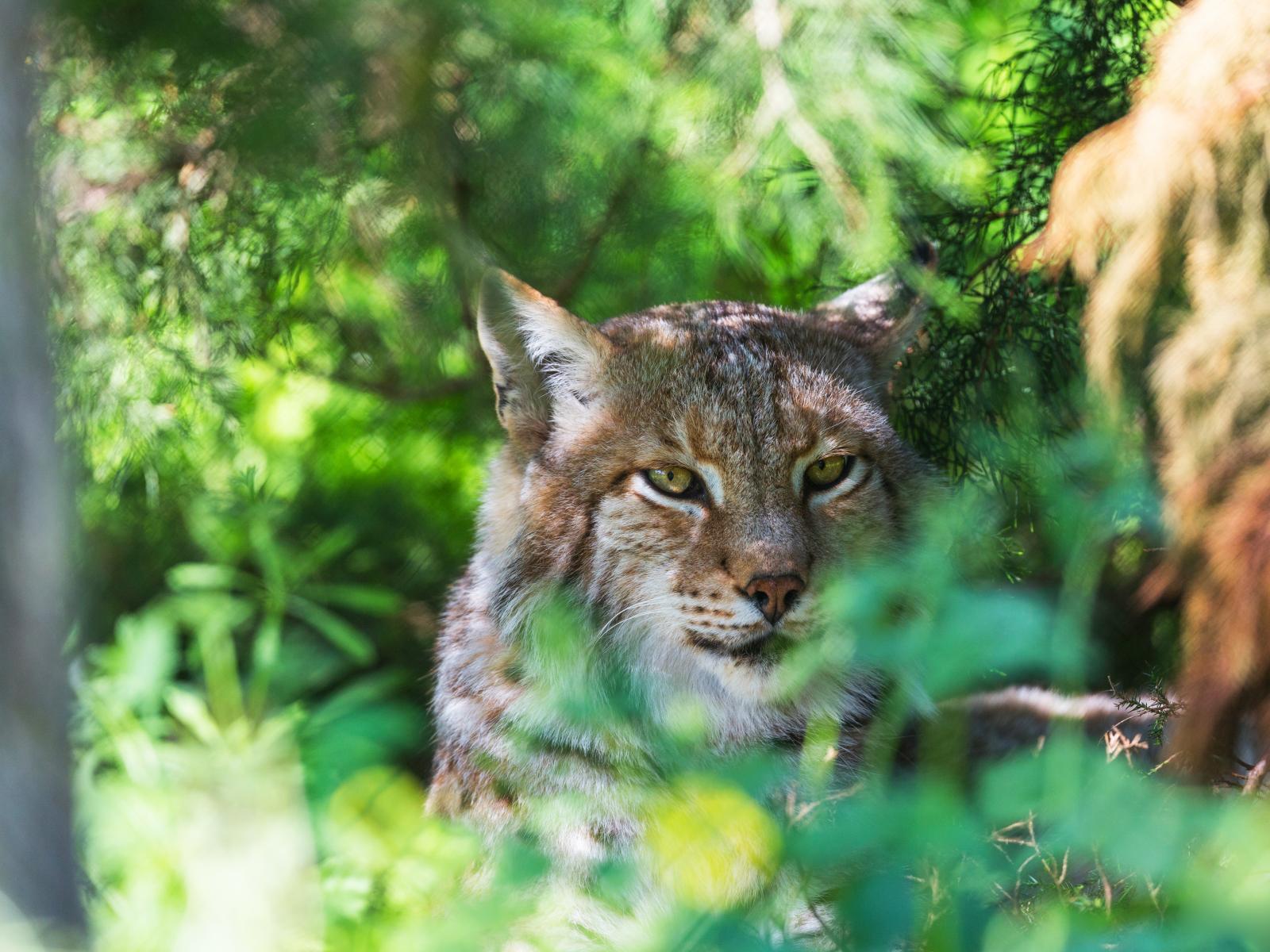 Wallpaper Big green-eyed lynx in the thickets in the summer