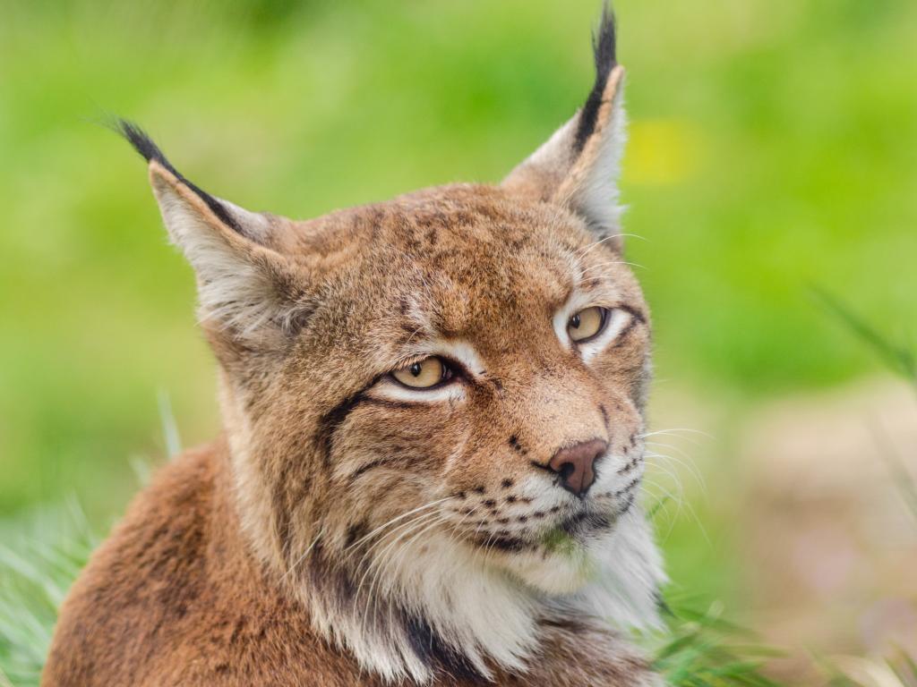 Wallpaper Muzzle lynx close-up on green grass