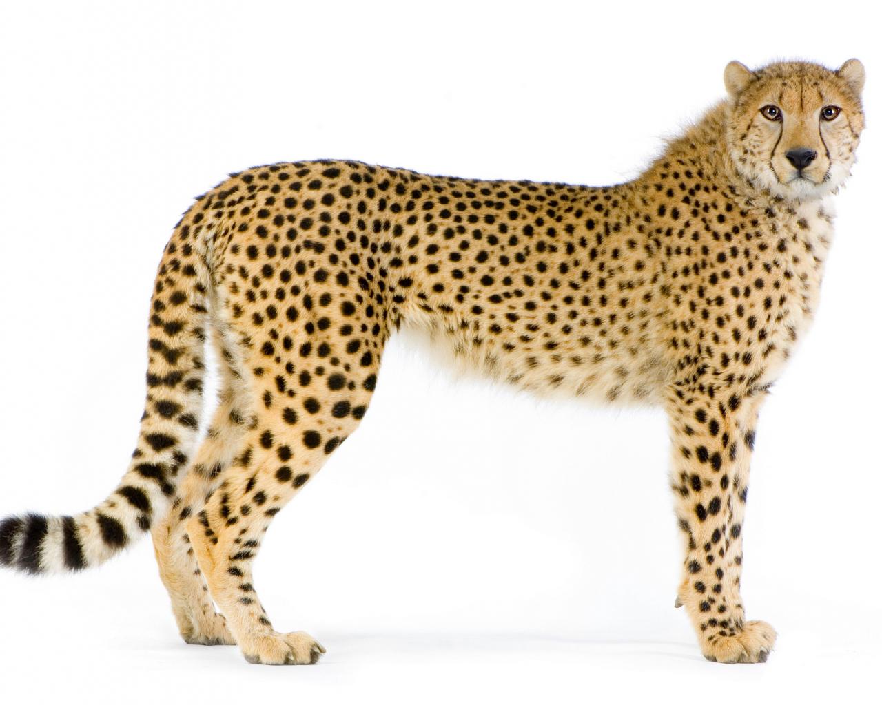 Wallpaper Big spotted leopard on a white background