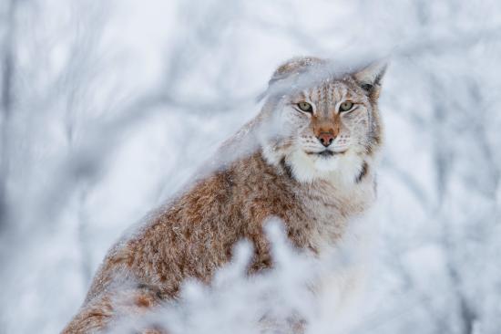 Wallpaper Lynx on the background of hoarfrost-covered branches