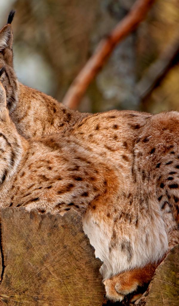 » Wallpaper Two lynxes lie on a dry tree