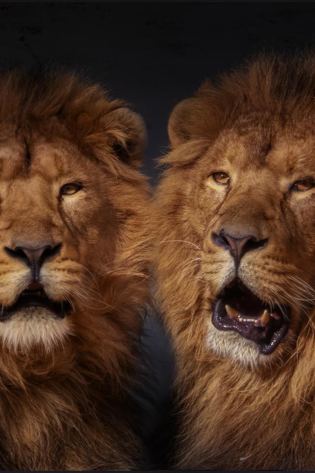 Wallpaper Two big serious lions