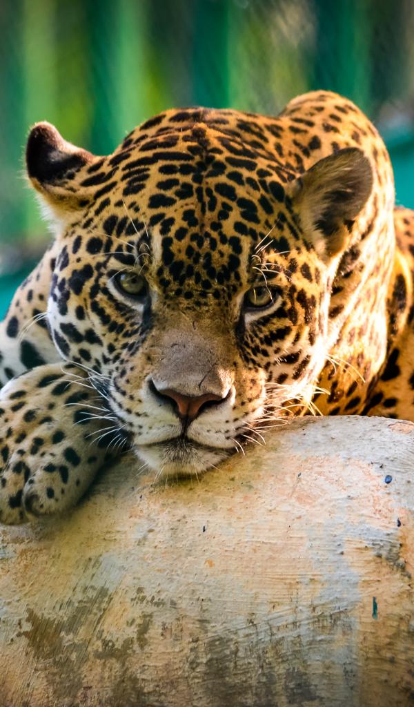 Wallpaper Big spotted jaguar lies on the stones in the zoo
