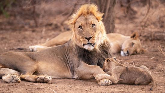 Wallpaper Big lion with lioness and little lion cub