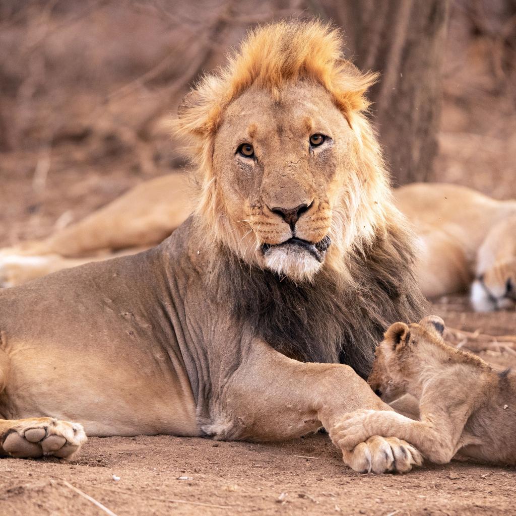Wallpaper Big lion with lioness and little lion cub