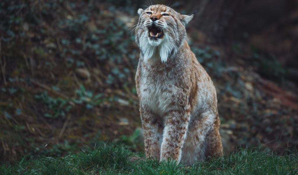 » Wallpaper Big lynx screams in the forest