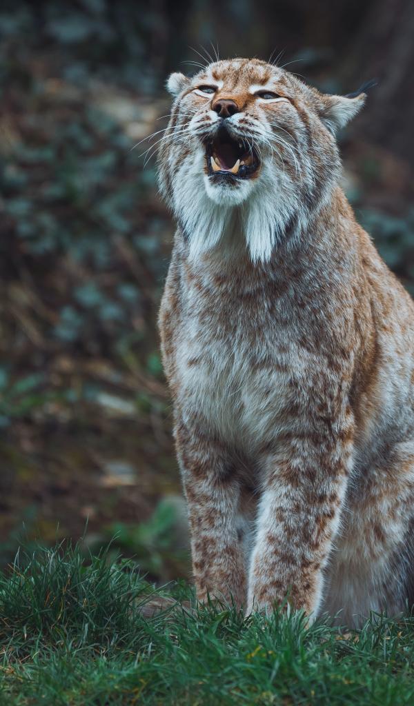 » Wallpaper Big lynx screams in the forest