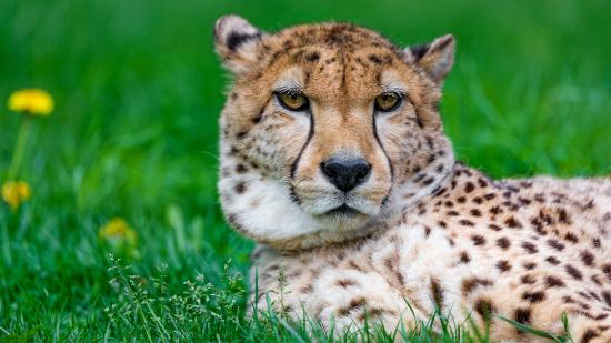 Wallpaper Big cheetah lies on green grass close-up
