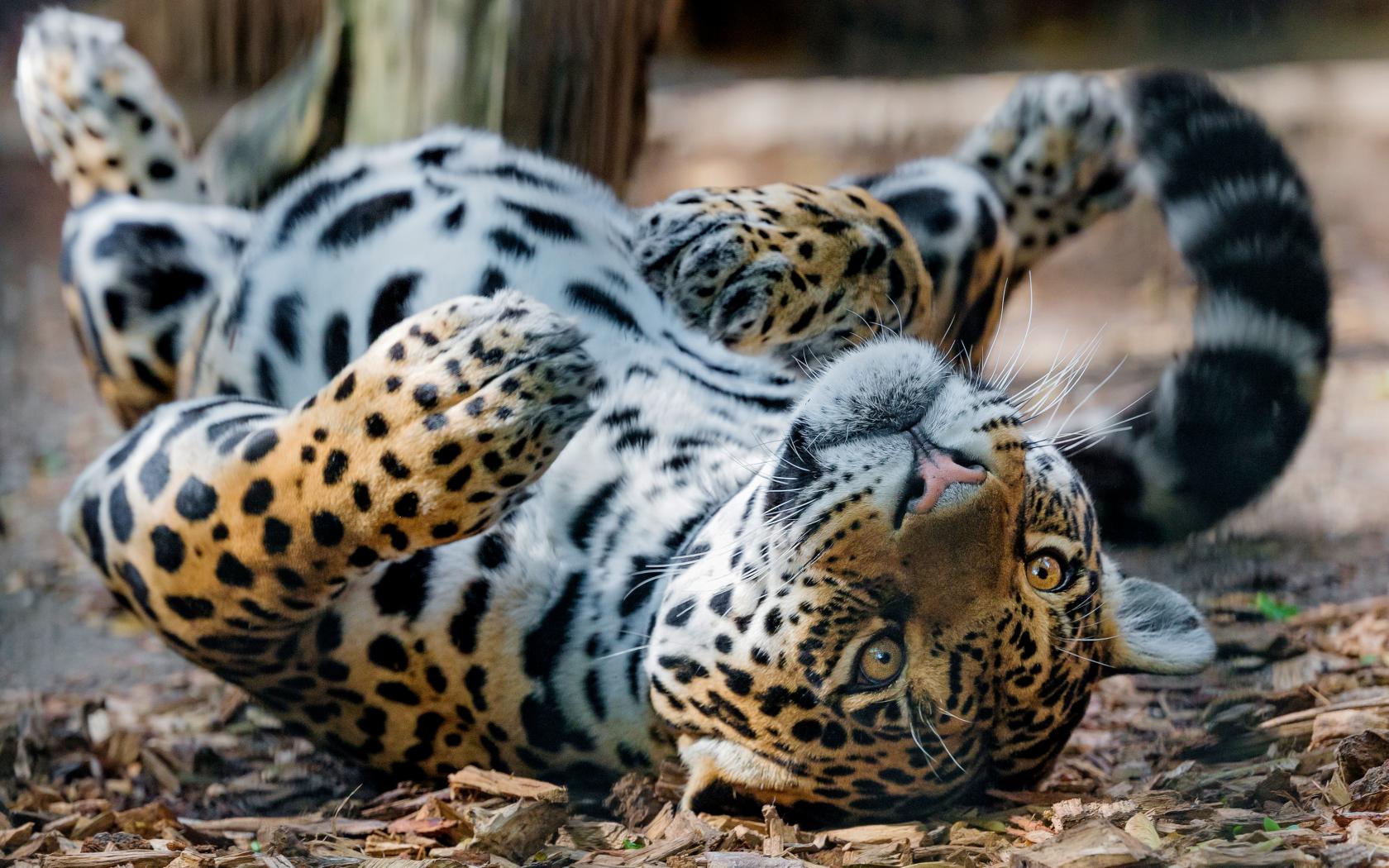 Wallpaper Big spotted jaguar lies on the ground
