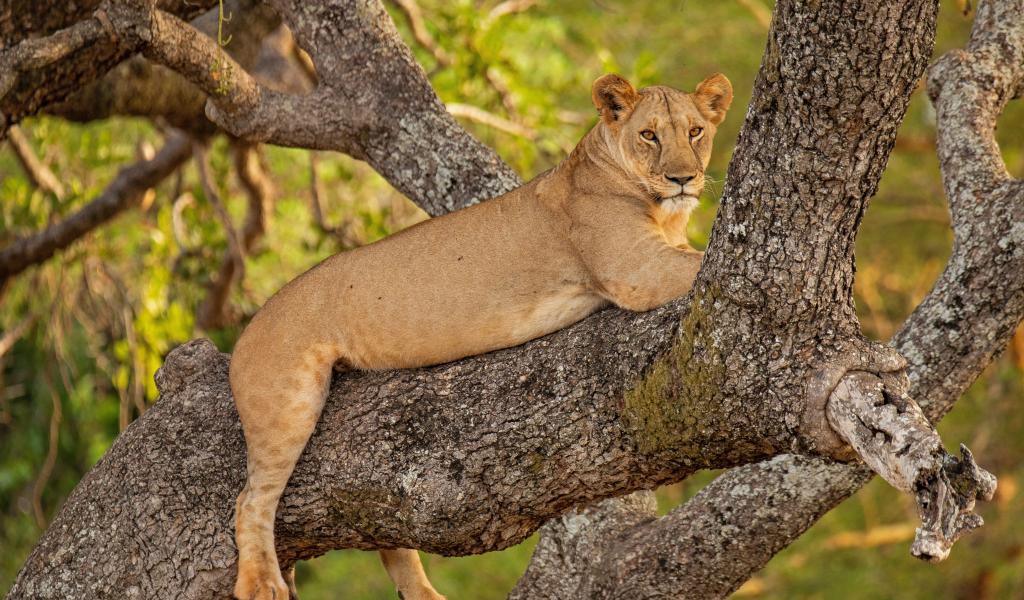 » Wallpaper Big lioness lies on a tree branch