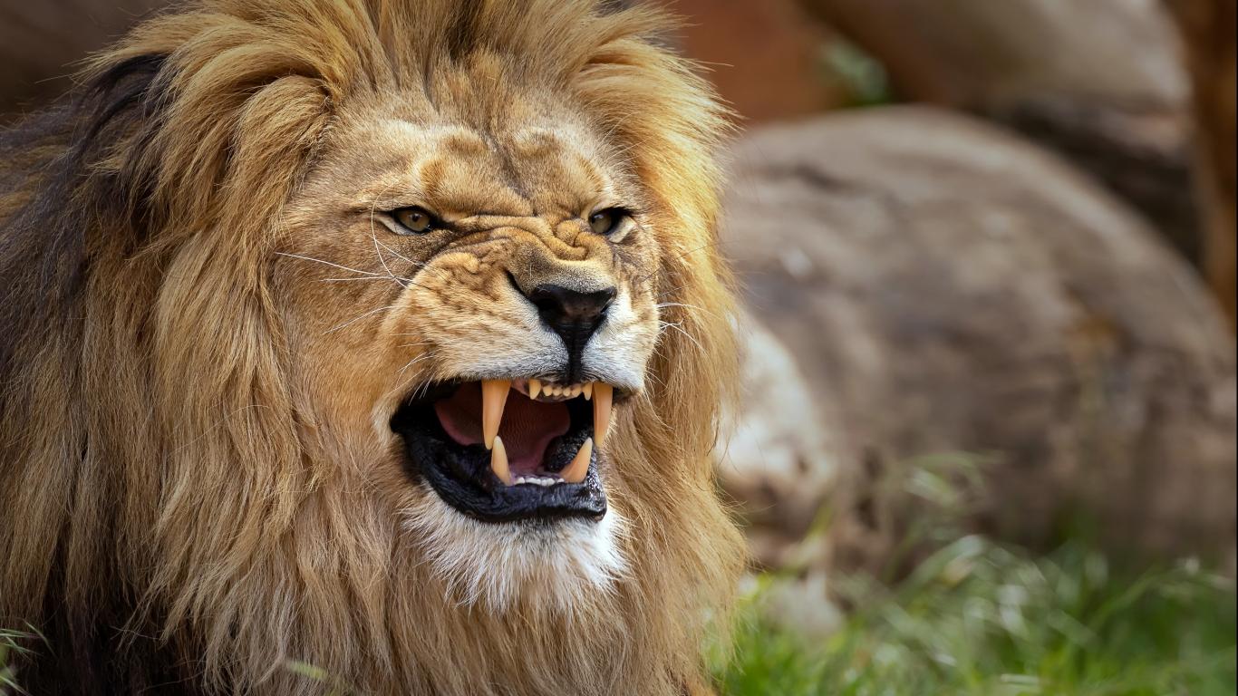 Wallpaper Sharp fangs at the formidable lion
