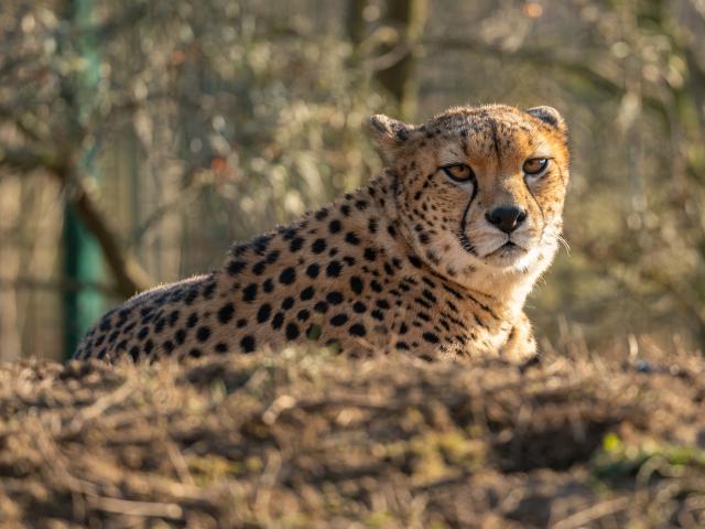 Wallpaper Big cheetah lies on the grass in the sun