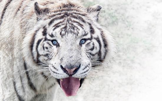 Wallpaper White blue-eyed tiger with a protruding tongue