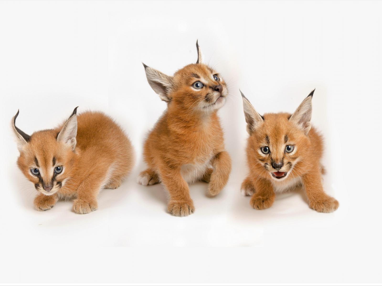 Wallpaper Three little lynx kittens on a white background