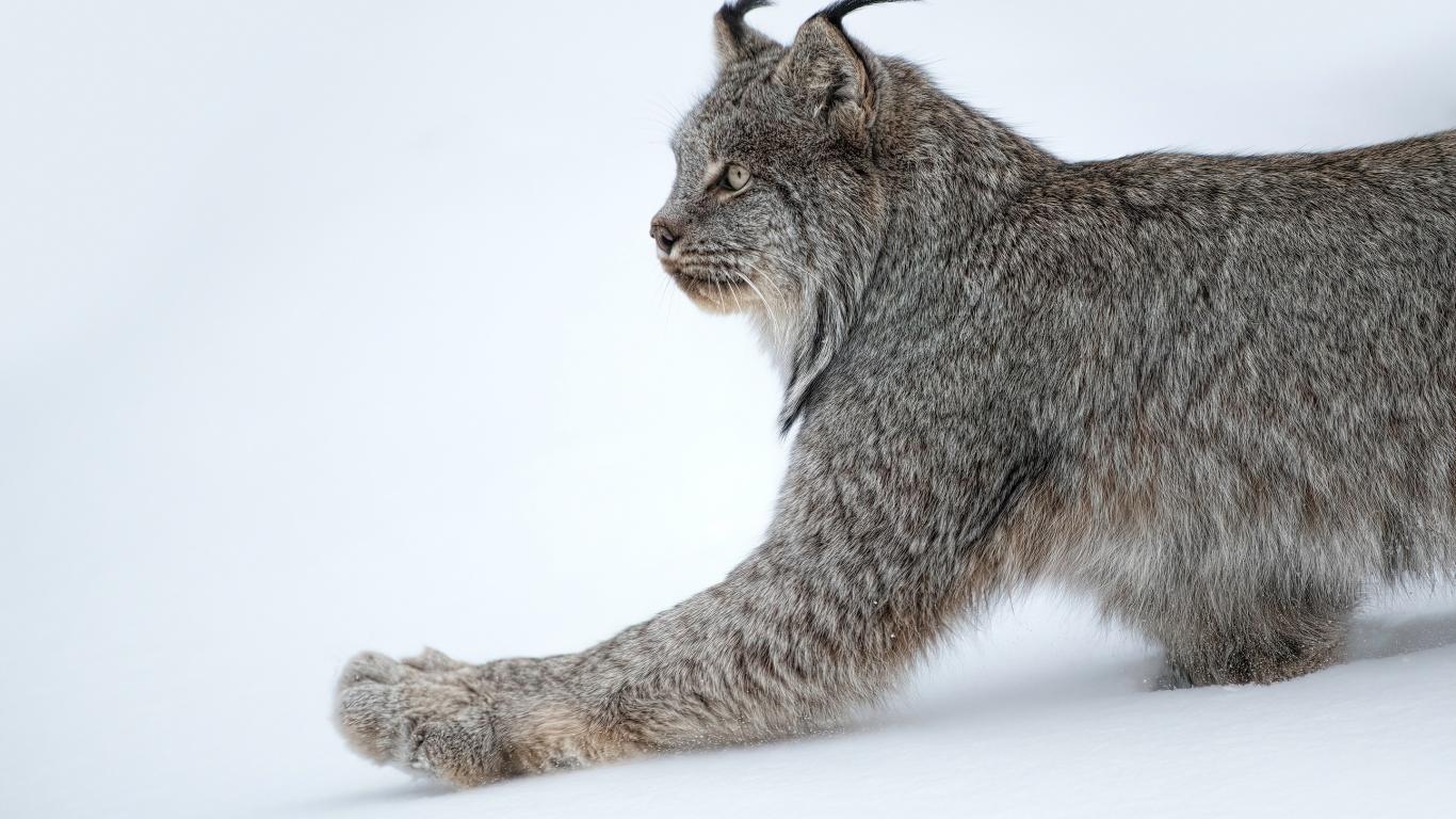 Wallpaper Large predatory lynx on white snow
