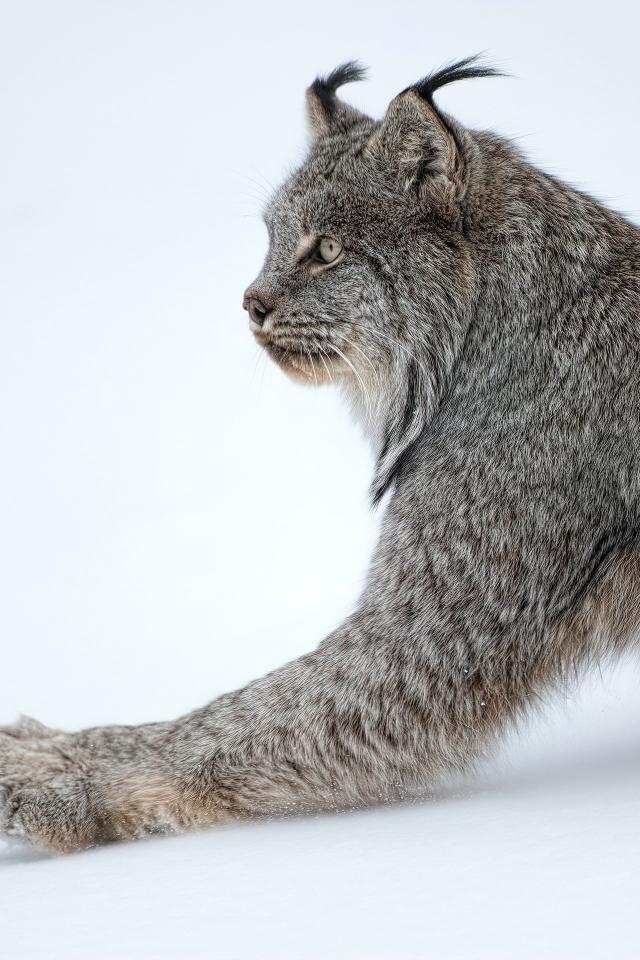 Wallpaper Large predatory lynx on white snow