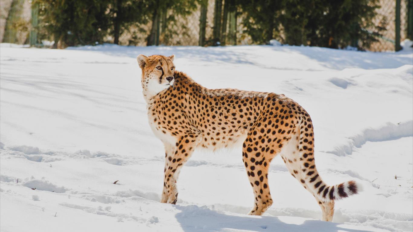 Wallpaper Cheetah stands in the snow at the zoo
