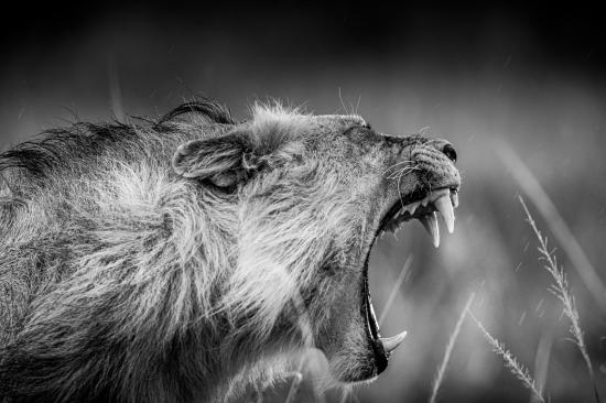 Wallpaper Terrible roar of a lion black and white photo