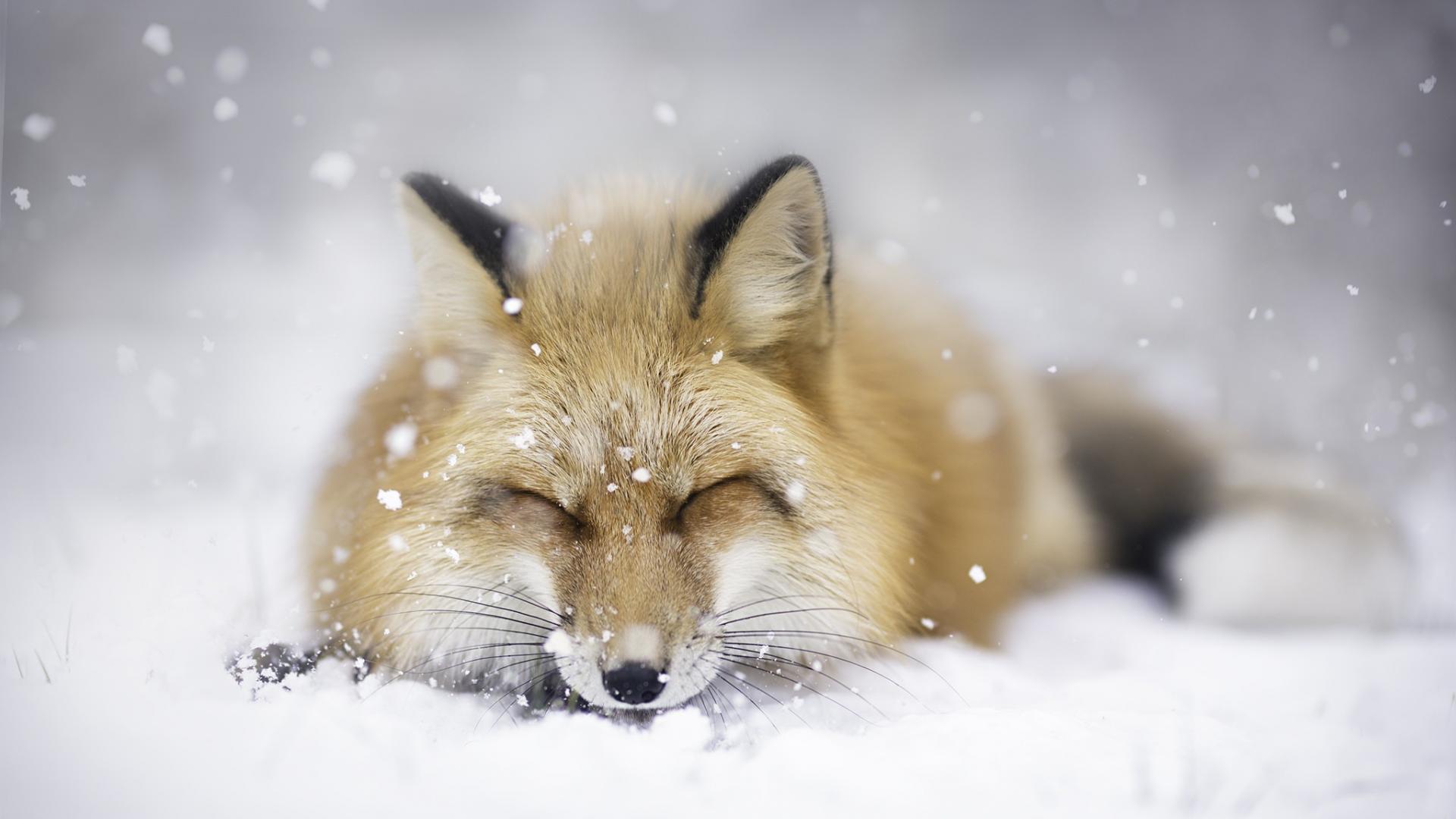 » Wallpaper Fox sleeping on the white snow