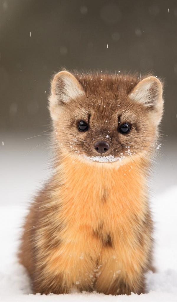 Wallpaper Funny American marten in the snow