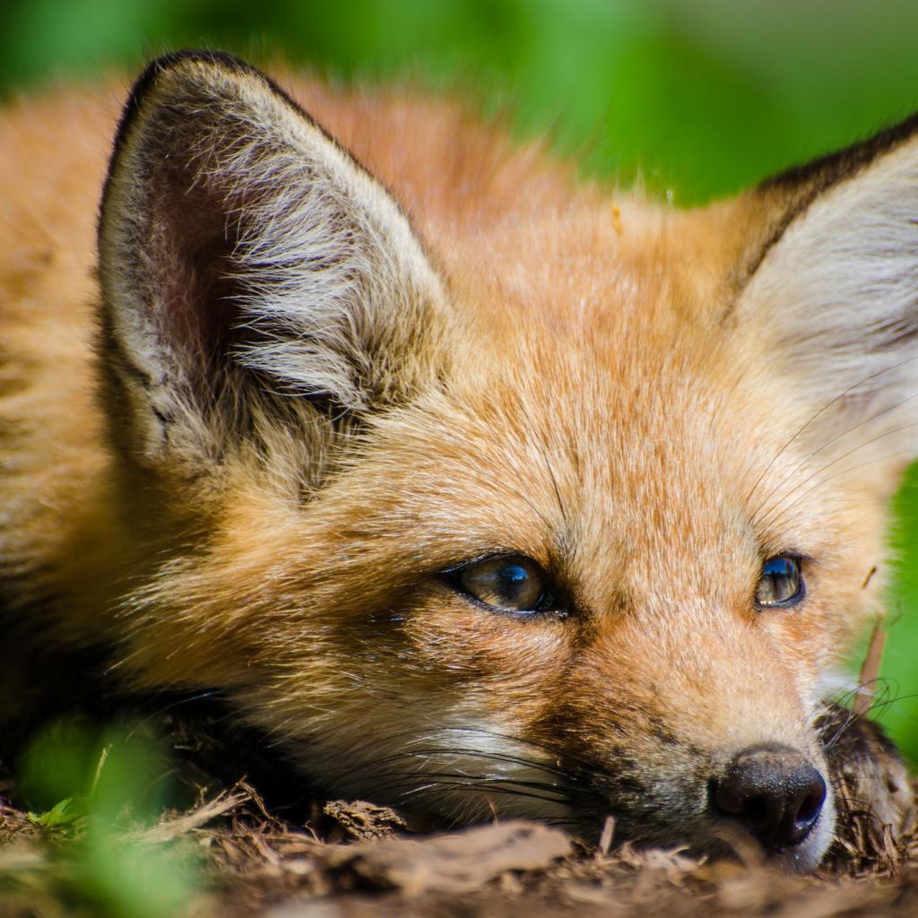 Wallpaper Fox with a sad face lies on a dry grass