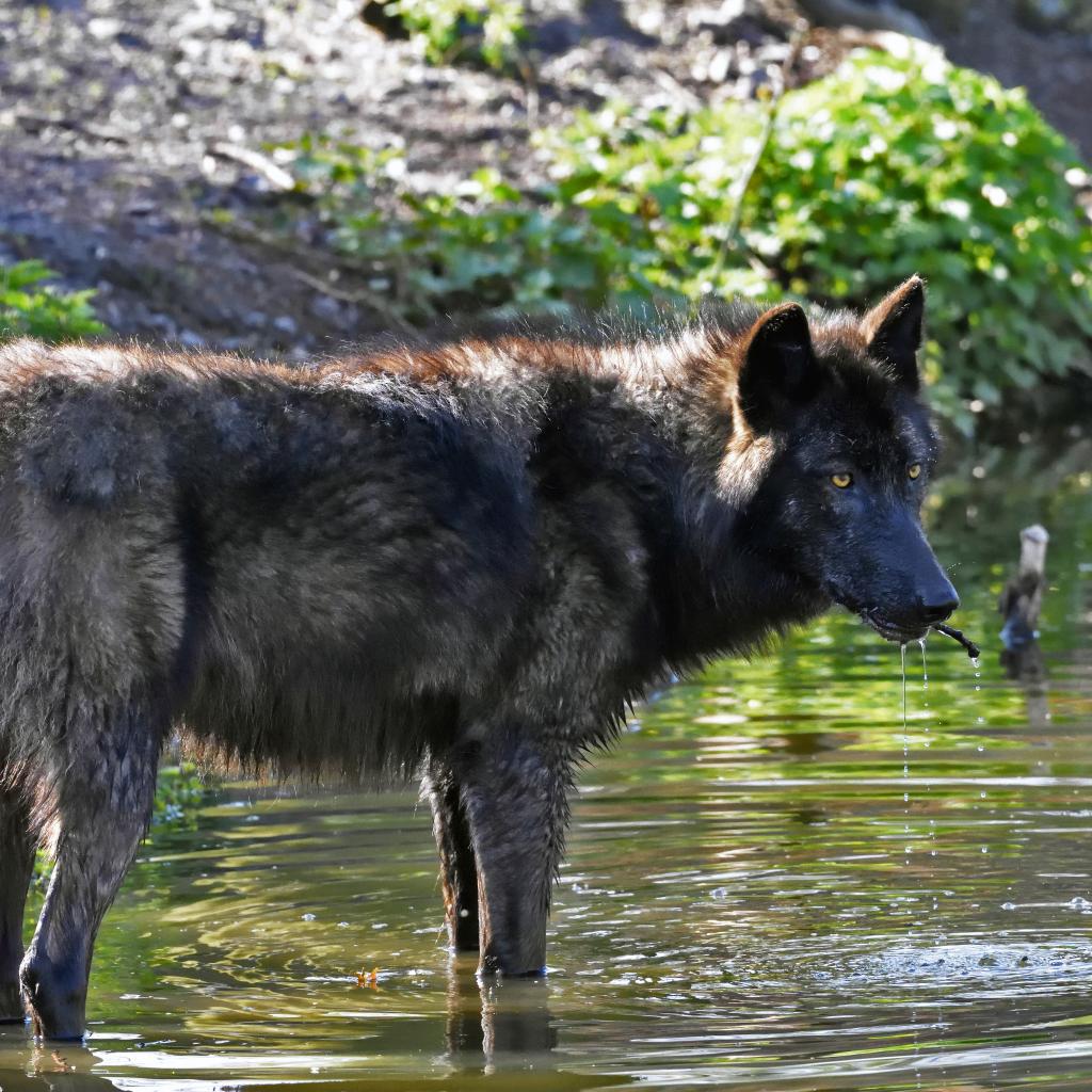 Wallpaper A large black wolf stands in the water