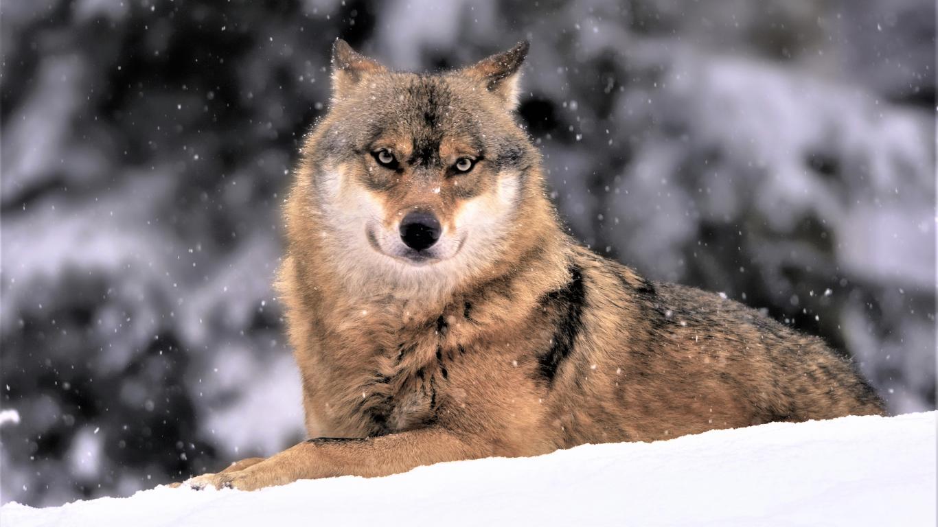 Wallpaper The wolf stands on the cold white snow in the winter forest