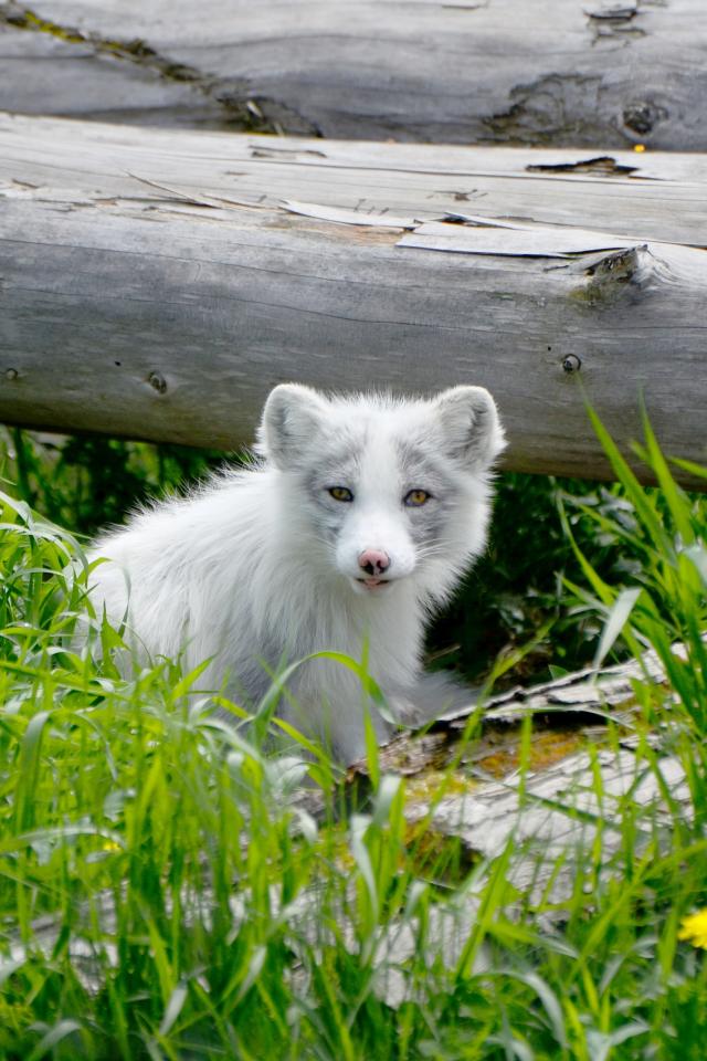 » Wallpaper Little fox sits in the green grass