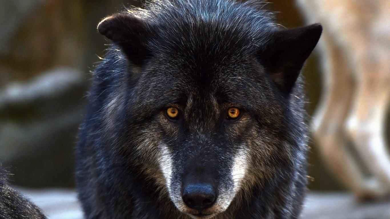 Wallpaper Large black wolf with yellow eyes