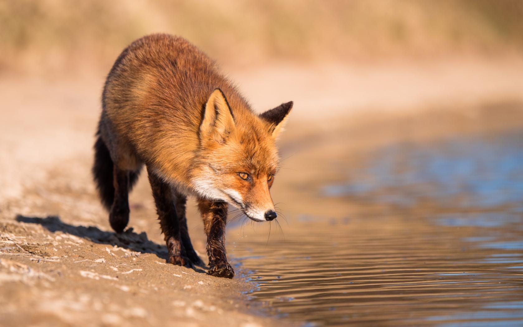 Wallpaper Red fox near the water