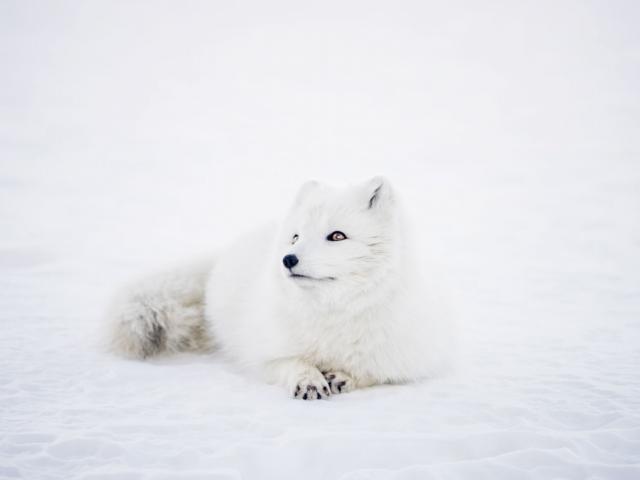Wallpaper White fox lies in the snow