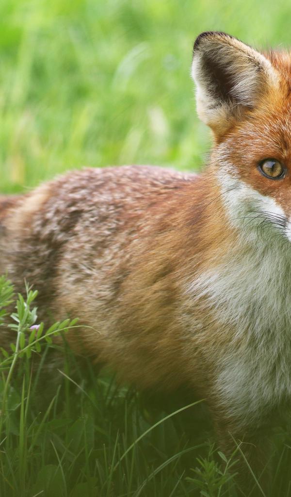 Wallpaper Sly fox stands in green grass