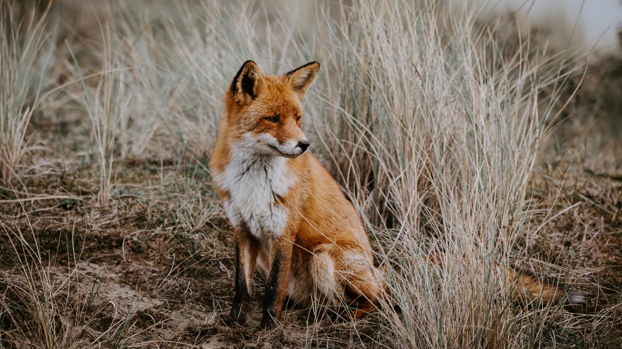» Wallpaper Sad red fox sitting in the grass