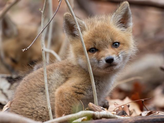 » Wallpaper Little cute red fox in the branches
