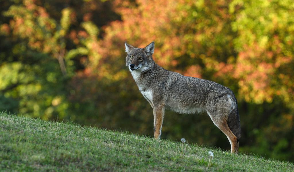 Wallpaper A gray she-wolf with a wolf stands on a mossy tree