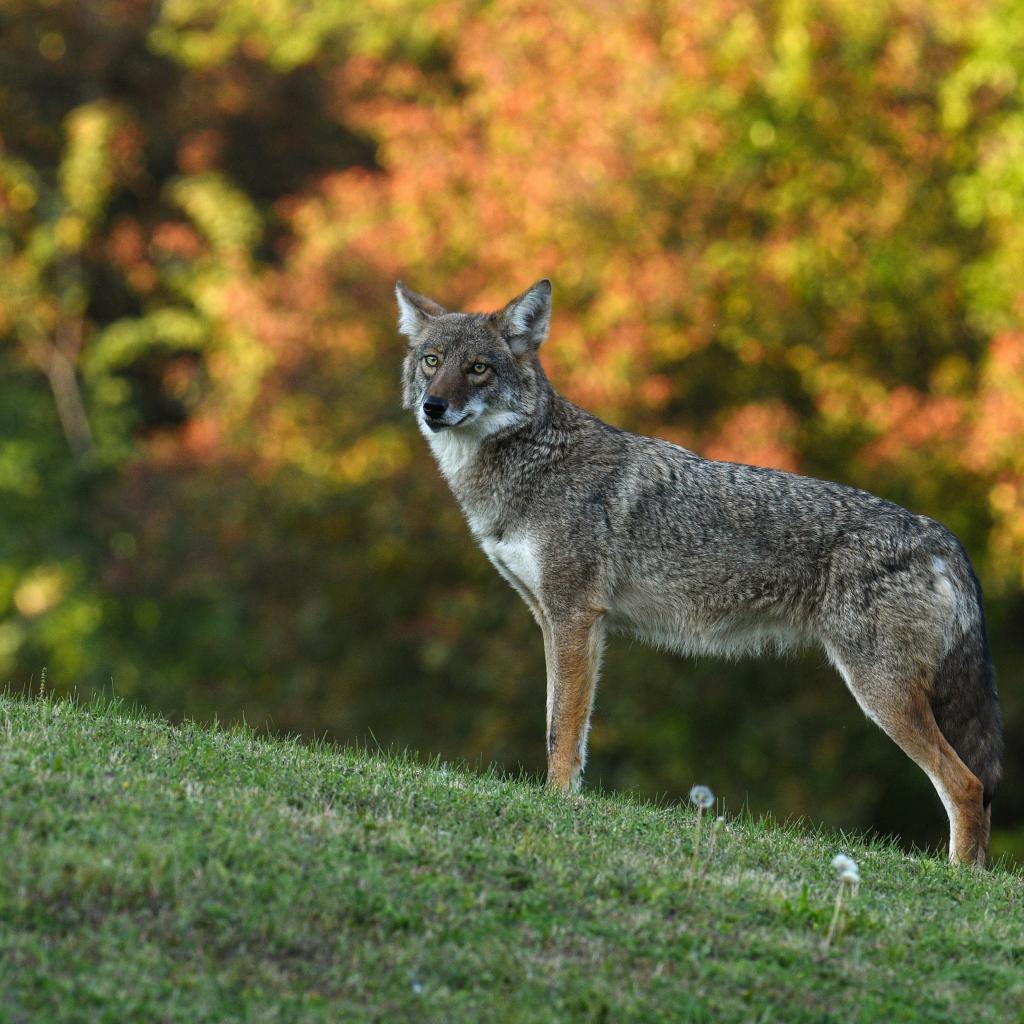» Wallpaper Gray wolf stands on green grass