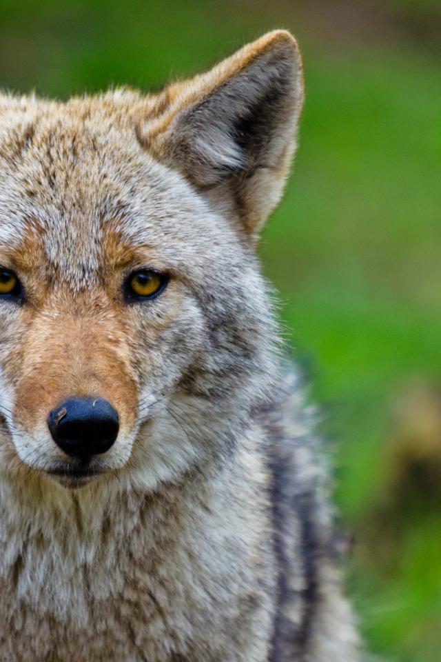 Wallpaper A gray she-wolf with a wolf stands on a mossy tree